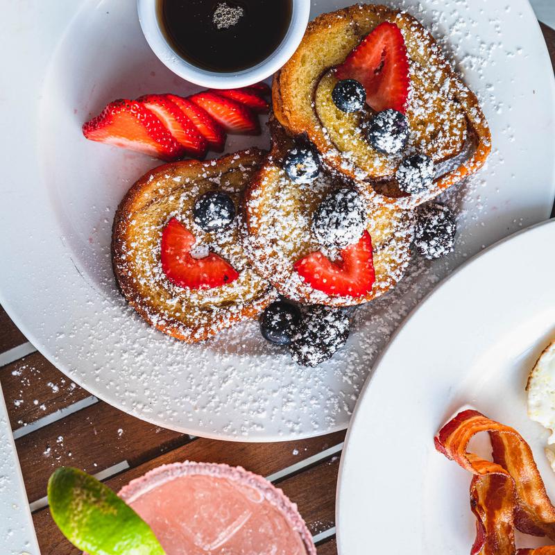 French Toast, topped w/ berries & powdered Sugar 2 eggs, choice of protein ADDITION $3.00 to upgrade to Belgian waffle
